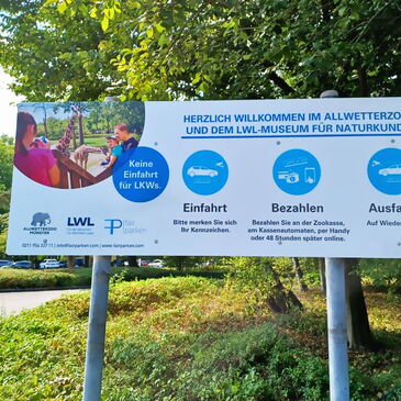 Das digitale Parksystem FreeFlow löst auf den rund 1.200 Stellplätzen des Allwetterzoos in Münster sowie der Parkfläche des LWL-Museum für Naturkunde die bisherige Schrankenanlage ab. Diese war nicht nur störanfällig, sondern verursachte bei besucherstarken Tagen auch größere Rückstaus im Ausfahrtsbereich.