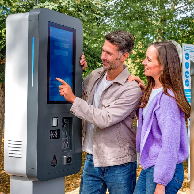 Parkende zahlen ihre Parkgebühr an unserer Self-Service-Lösung in unter 5 Sekunden: Kennzeichen eingeben, Parkvorgang abrufen, zahlen – bar, per Karte oder App. Bei Bedarf können Sie Ihrer Kundschaft, Mitarbeitenden und Dienstleistern über QR-Codes oder NFC-Karten Sondertarife sowie Rabatte freischalten.